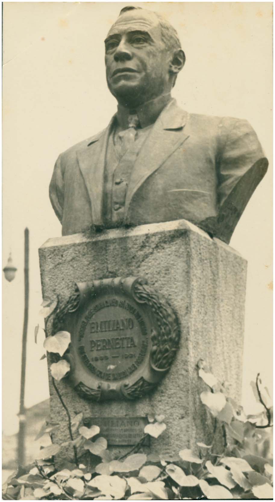 Notas: Uma das homenagens ao poeta Emiliano Perneta, na Praça Osório. O busto e uma placa formam a “Homenagem da Comissão do Centenário do Poeta”.