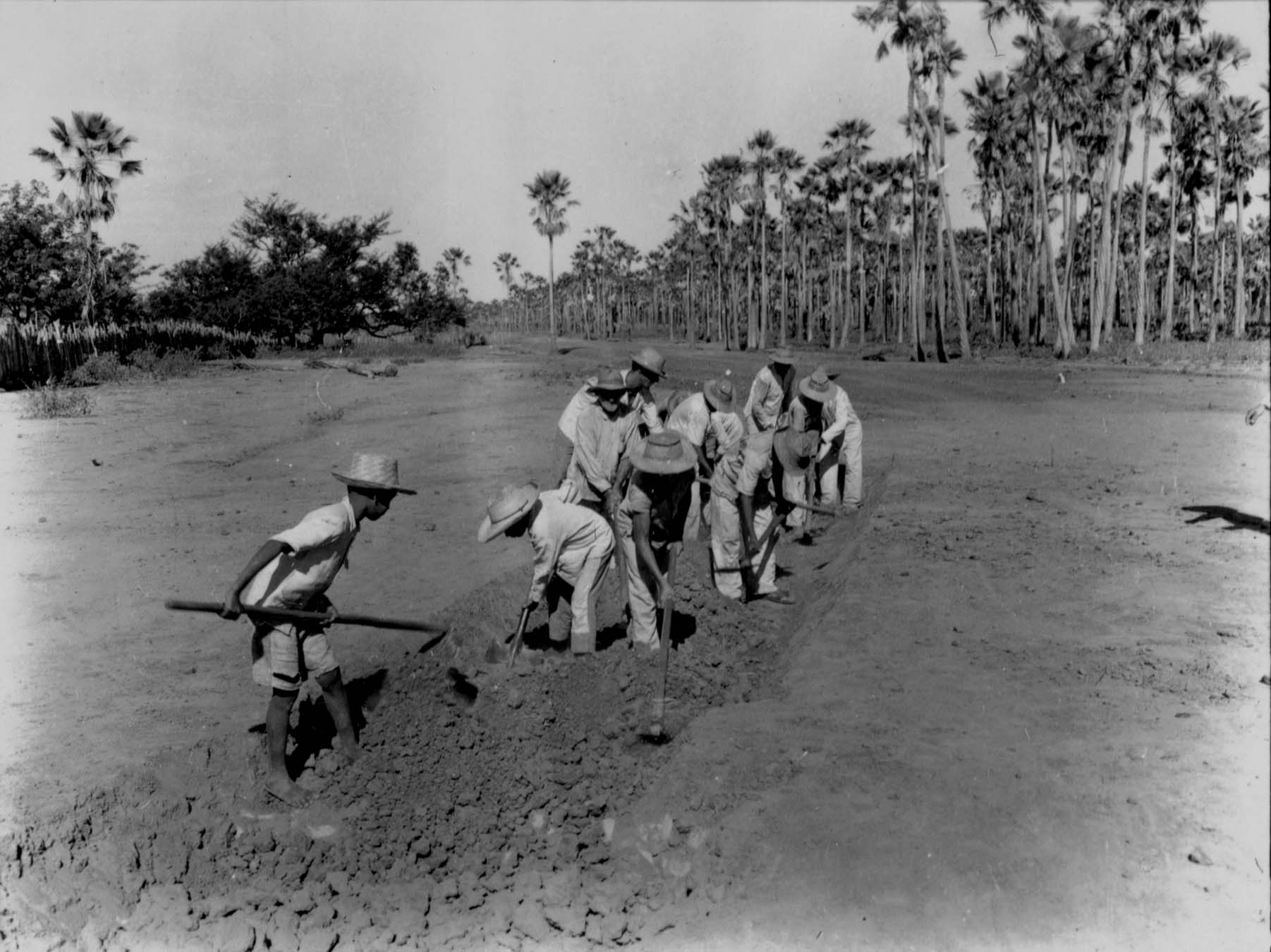 Título: Trabalhadores abrindo uma estrada em Limoeiro do Norte (CE)