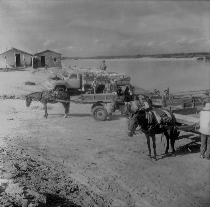 Assuntos: Asinino; Caminhões; Carroças; Ceará; Habitações; Jaguaribe (CE); Jaguaribe, Rio (CE); Pessoas; Portos; Rios