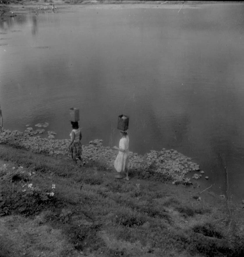 Título: Mulheres carregando água no Açude Lagoa do Arroz : Município de Cajazeiras
