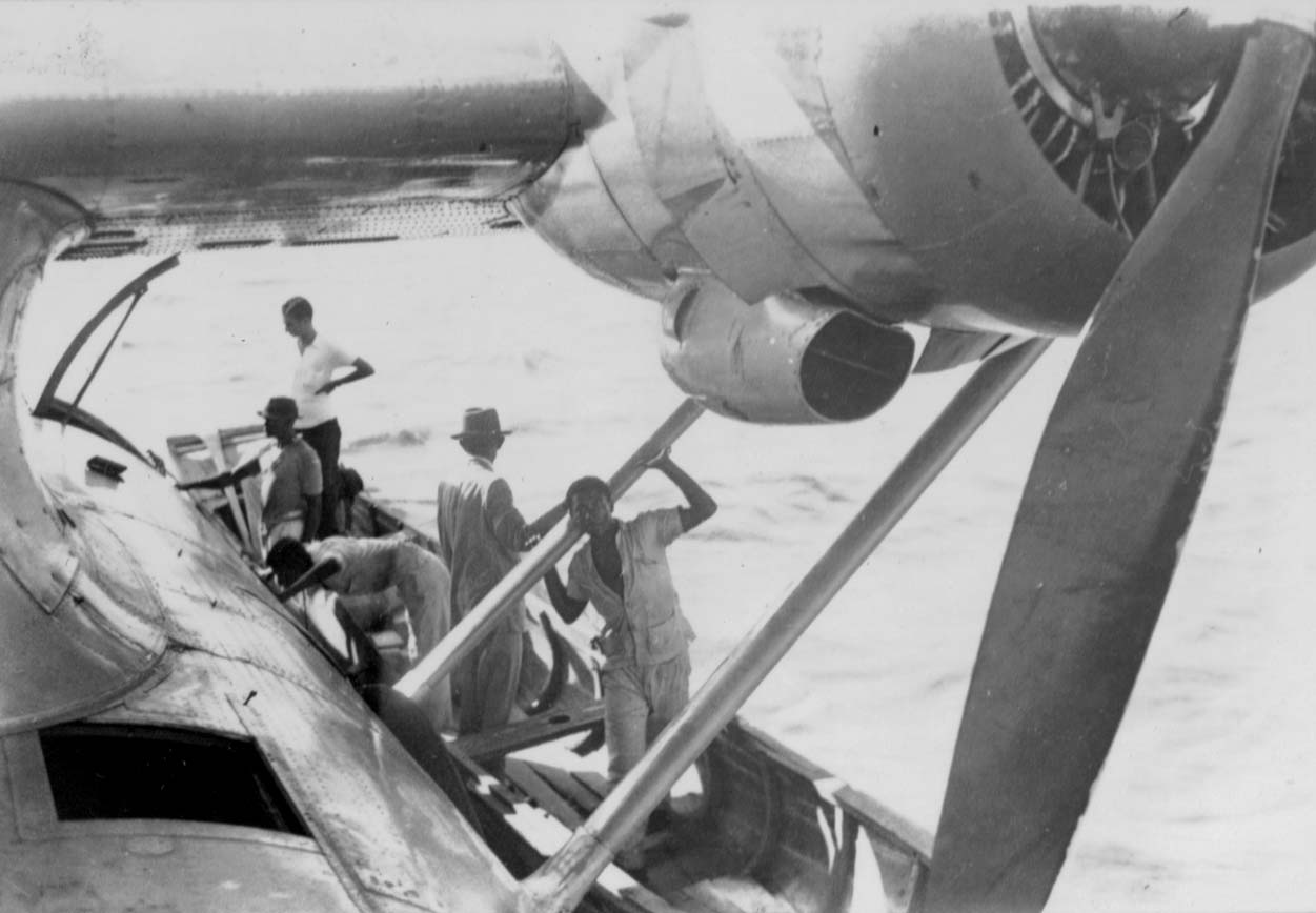 Título: Desembarque de passageiros de um hidro - avião no Rio São Francisco em Propiá (SE)