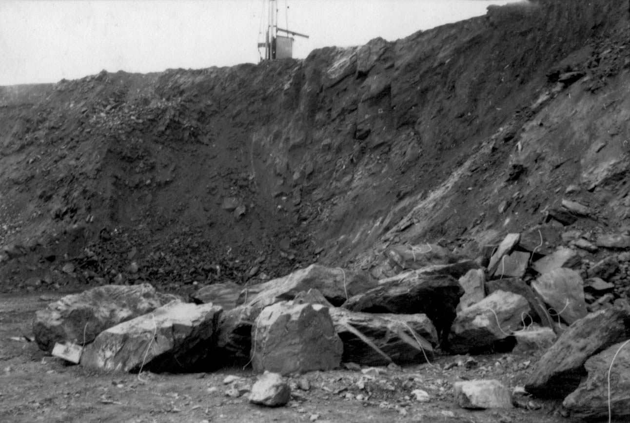 Título: Blocos a serem dinamitados para a extração de minério de ferro : município de Itabira