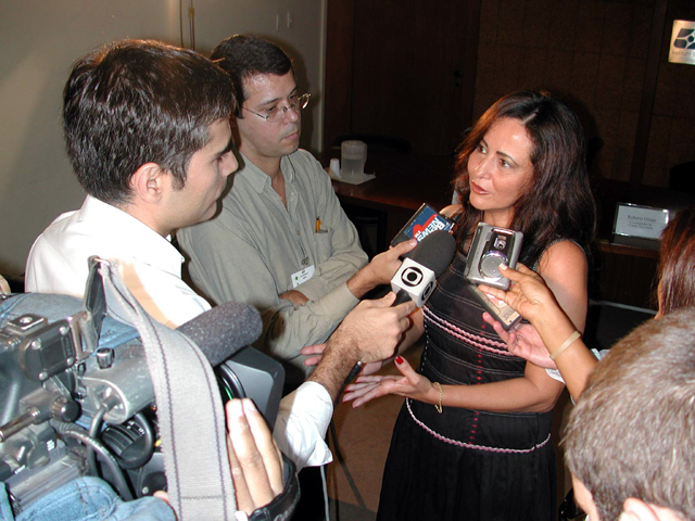 Notas: Sheila Cristina Zani(Coordenadora do PIB) concede entrevista à imprensa no auditório da Presidência.
