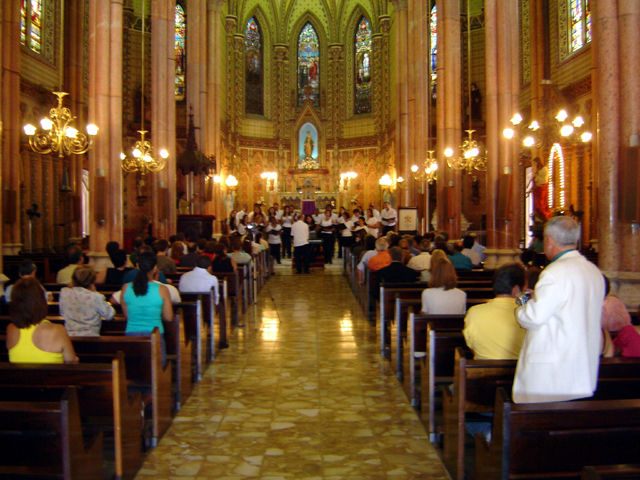 Notas: Ao fundo das dependências internas da Basílica da Imaculada Conceição no Rio de Janeiro, o Coral do IBGE, sob a regência do Maestro Márcio Luiz de Carvalho.