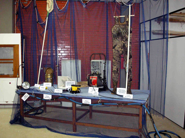 Notas: Exposição de equipamentos utilizados para a coleta de peixes.