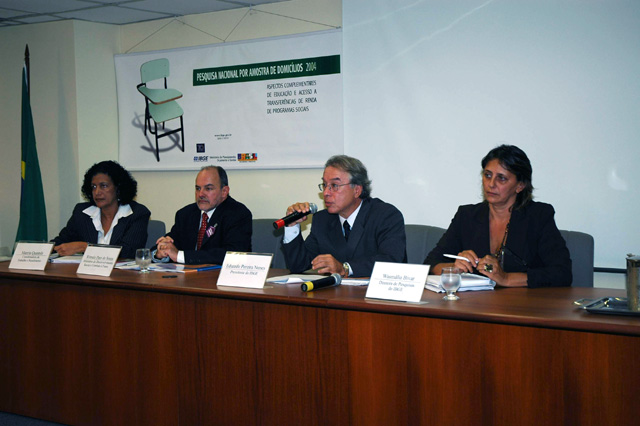 Notas: Auditório da Av. Chile. Mesa composta por Marcia Maria Melo Quintslr(Coordenadora do Índice de Preços), Rômulo Paes de Sousa(Ministério do Desenvolvimento Social e Combate à Fome), Eduardo Pereira Nunes(Presidente do IBGE) e Wasmália Socorro Barata Bivar(Diretora de Pesquisas).