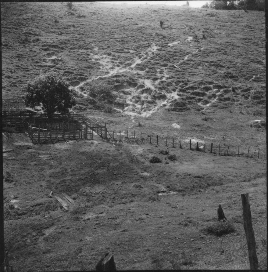Título: Paisagem 14 km. depois de Cachoeiro do Itapemirim. Erosão na encosta provocada pelo pisoteio do gado. Entre Cachoeiro do Itapemirim e Iconha (ES)