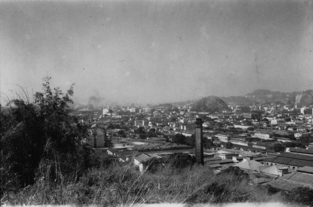 Assuntos: Cidades e vilas; Edifícios industriais; Habitações; Montanhas; Rio de Janeiro (RJ); Tecidos; Vistas panorâmicas