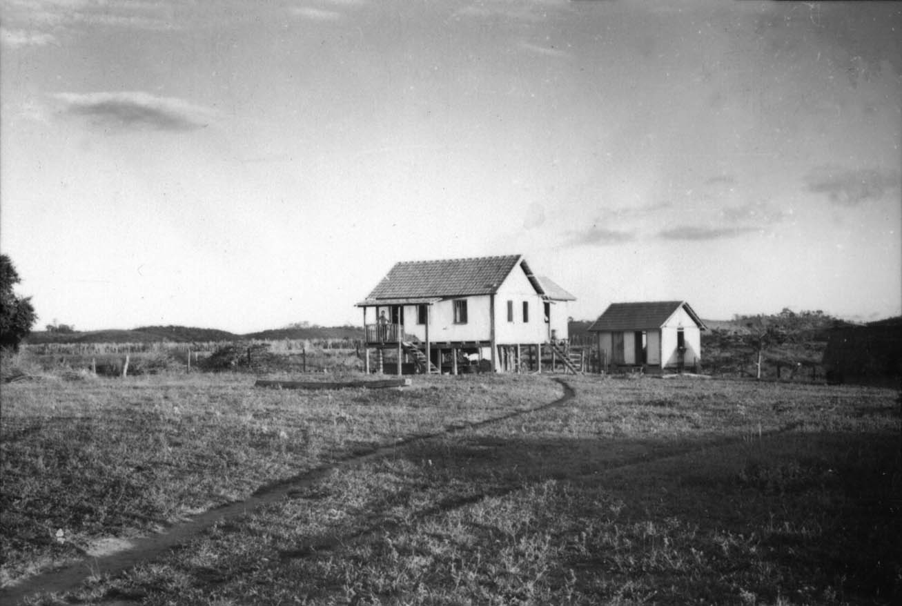 Título: Sede de fazenda construída sobre estacas, característica do local : casa de taipa com telhas (ES)