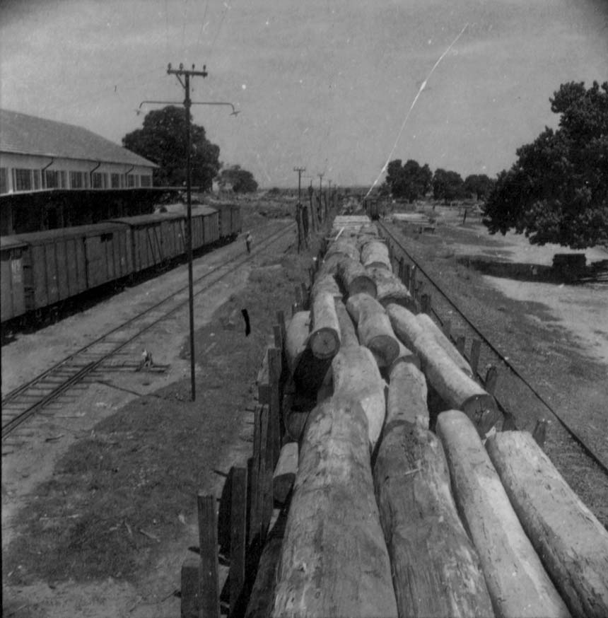 Título: Vagões carregados de madeira na estação de Presidente Epitácio (SP)
