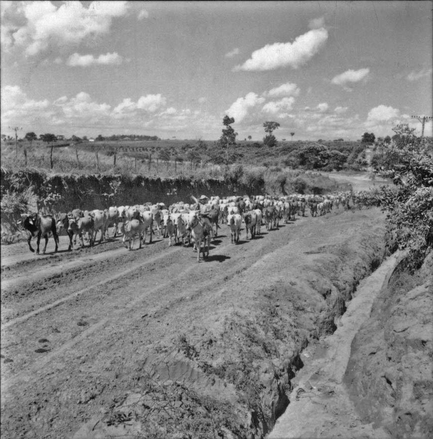 Título: Boiada de recria na estrada em direção a Guararapes : Município de Guararapes (SP)