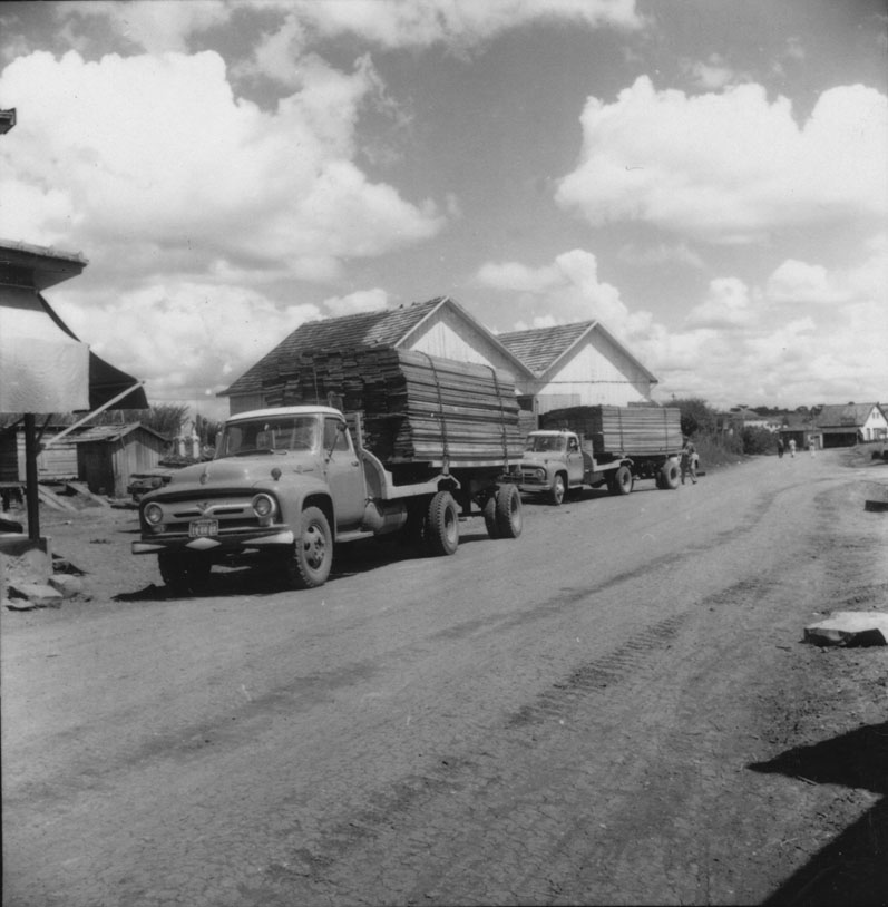Título: Caminhões carregados com tábuas de pinho no município de Campos Novos (SC)