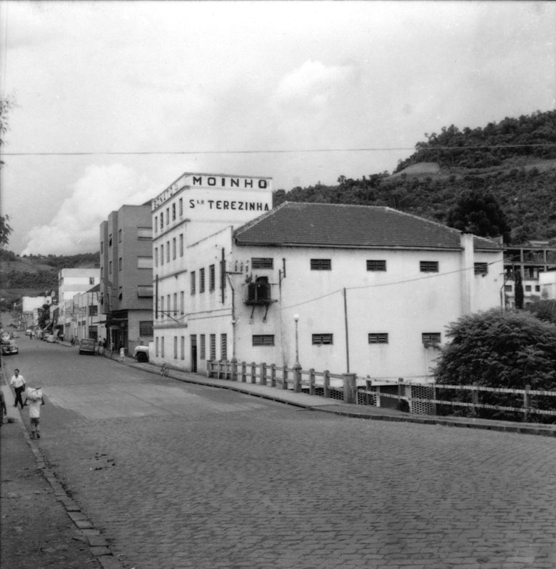 Assuntos: Edifícios; Joaçaba (SC); Moinhos e trabalhos em moinhos; Pessoas; Ruas; Santa Catarina; Trigo