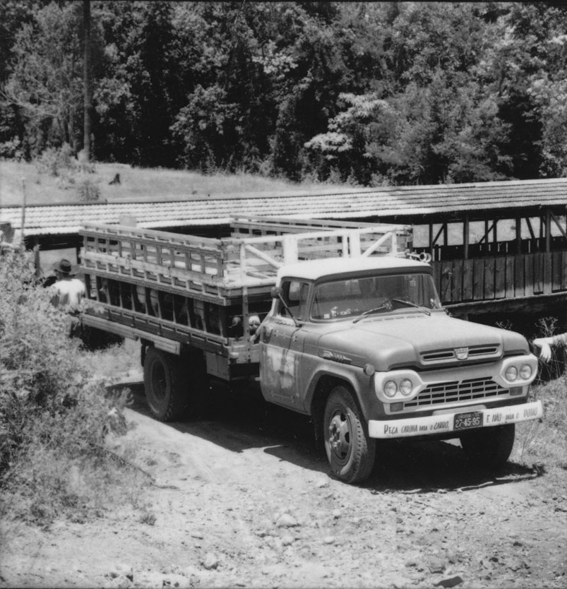 Título: Caminhão transportando porcos para a engorda : município de Concórdia