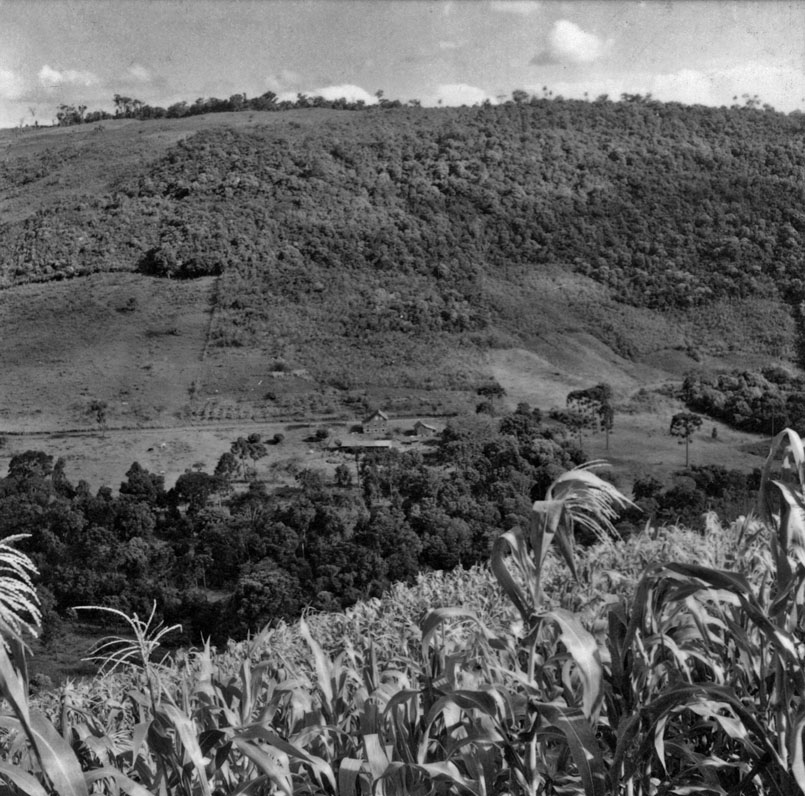 Título: Aspecto de um vale cultivado : milho e parreiras : município de Concórdia