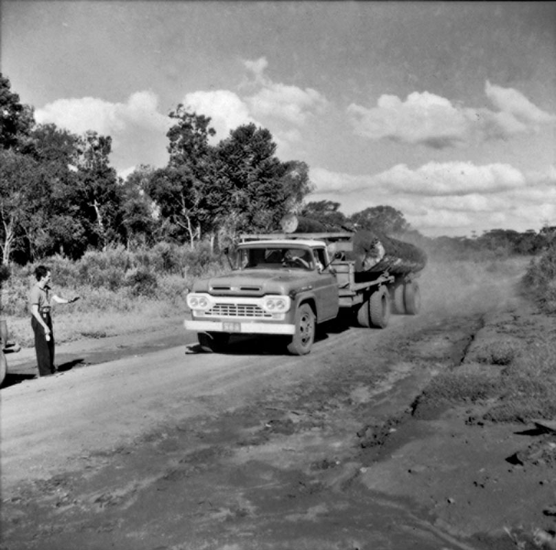 Assuntos: Caminhões; Estradas de terra; Madeira; Palma Sola (SC); Santa Catarina