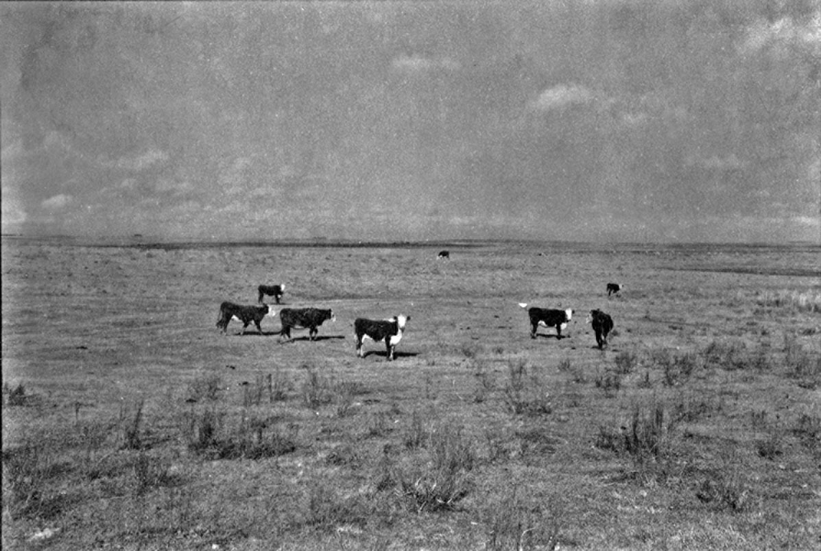 Título: Pasto com gado após o município de Bagé (RS)