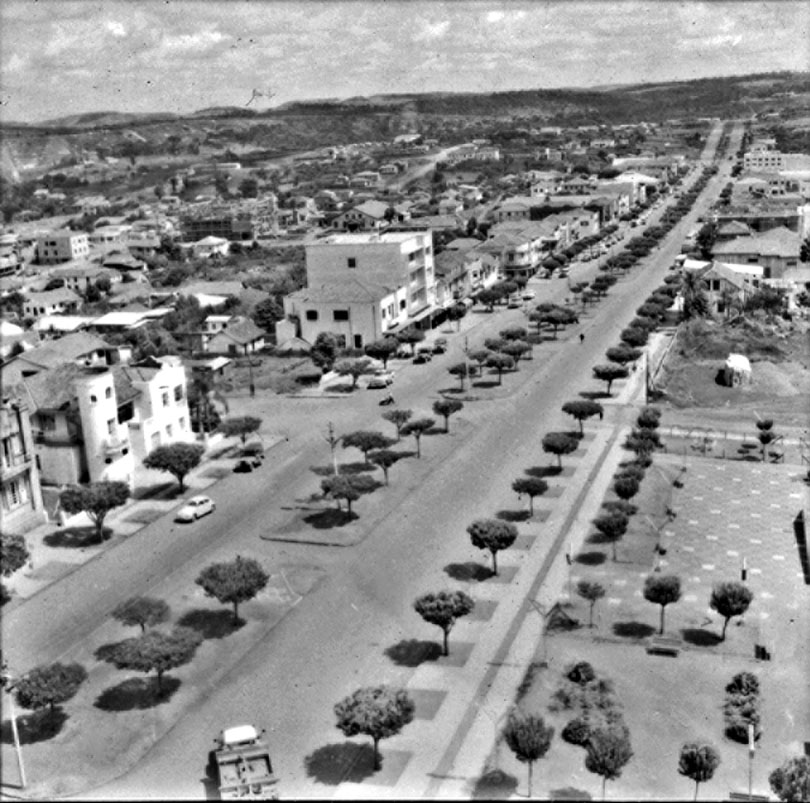 Título: Vista da torre da Igreja de Chapecó, vendo-se a Avenida Principal da cidade (SC)