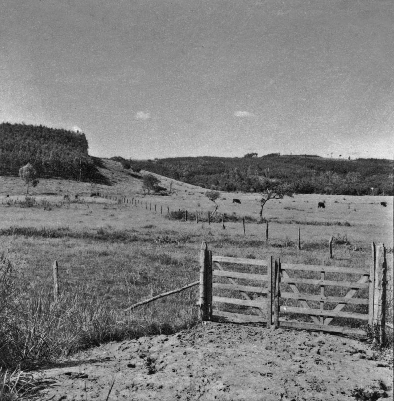 Título: Panorâmica : potreiro, vendo-se ao fundo, plantação de acácia negra : Caí (RS)