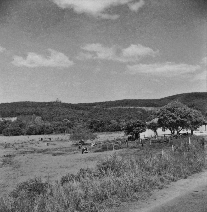 Título: Casa de pequeno proprietário : vendo-se gado e plantação de acácia negra ao fundo : Caí(RS)