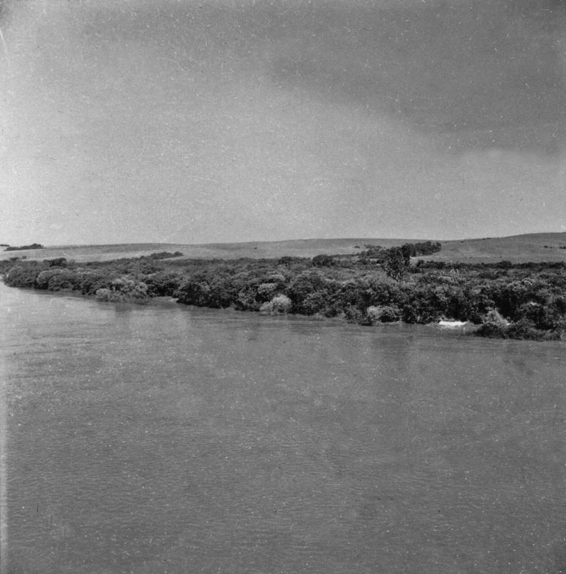 Título: Panorâmica (da ponte) para o norte do rio Jacuí : Município de Rio Pardo (RS)