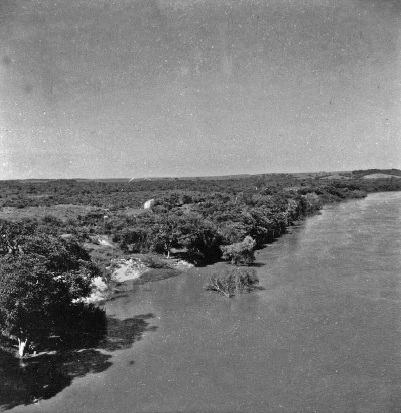 Título: Panorâmica (da ponte) para o norte do rio Jacuí : Município de Rio Pardo (RS)