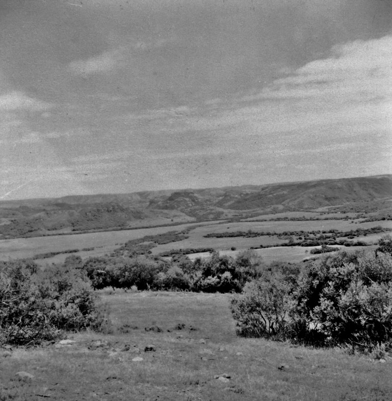 Título: Panorâmica da depressão (grande vale) : ao fundo, fratura e falha da superfície de 400m (18 kms para Bagé) direção NE-SE (RS)