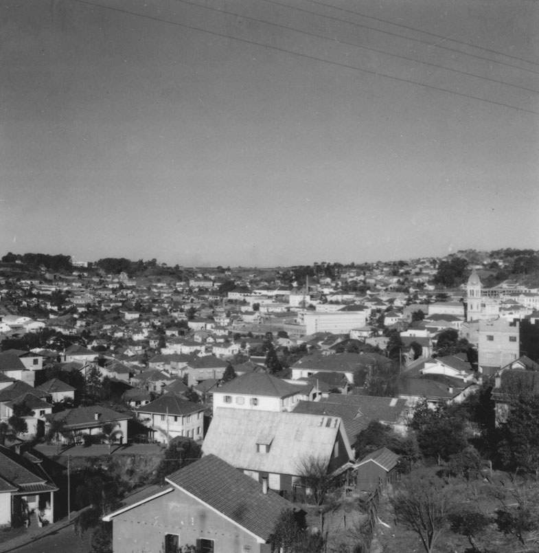 Assuntos: Bento Gonçalves (RS); Edifícios; Habitações; Igrejas (Edifícios); Rio Grande do Sul; Ruas; Vistas panorâmicas