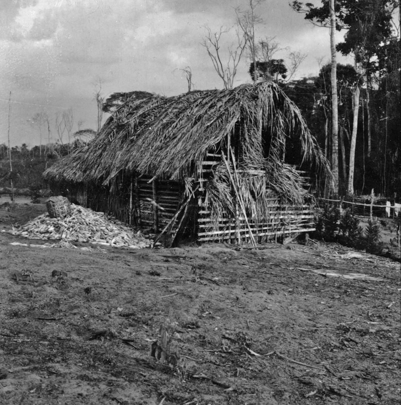Título: Paiol de folhas de palmeira, de um meeiro baiano, na Gleba Bandeirante, de Porto dos Gaúchos (MT)
