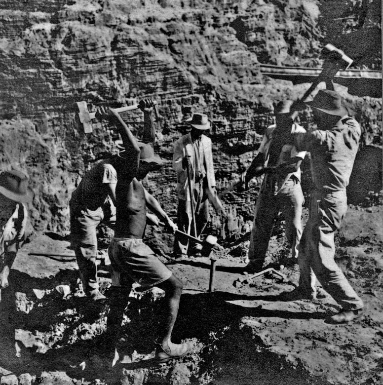 Título: Cristalina : mineração de cristal de rocha vendo-se homens trabalhando : quartzo (GO)