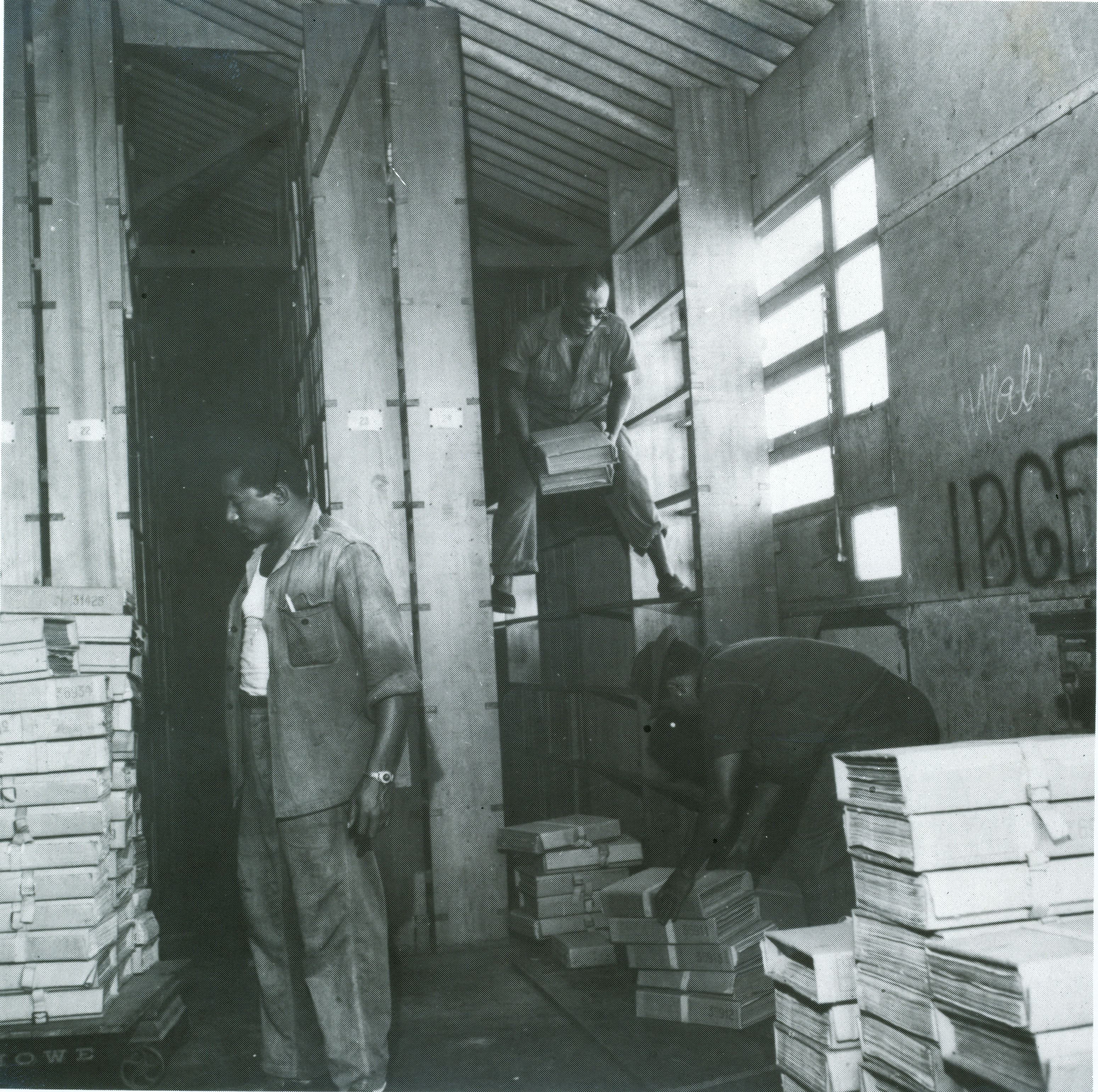 Título: Censo de 1960 : funcionários do IBGE retiram as pastas do censo para posterior trituração dos questionários
