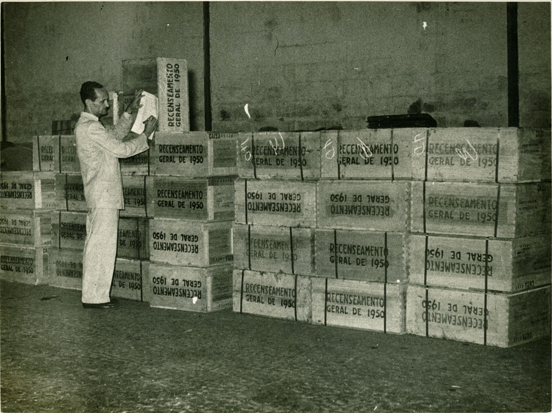 Título: Censo de 1950 : chegada de 565 caixas com material do recenseameno no 2º Armazém do Estado da Bahia