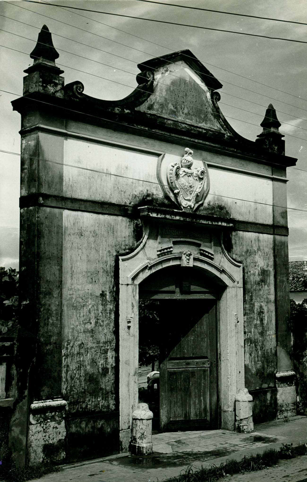 O portão, além da beleza arquitetônica, é um símbolo da prosperidade e riqueza de uma extinta aristocracia. Pilares nas extremidades esquerda e direita fazem seu enquadramento, evidenciando a importância dada à entrada principal. No coroamento estão o frontão curvilíneo e os coruchéus; abaixo do entablamento, alinhado ao eixo central da porta, tem destaque um belo brasão familiar primorosamente trabalhado.