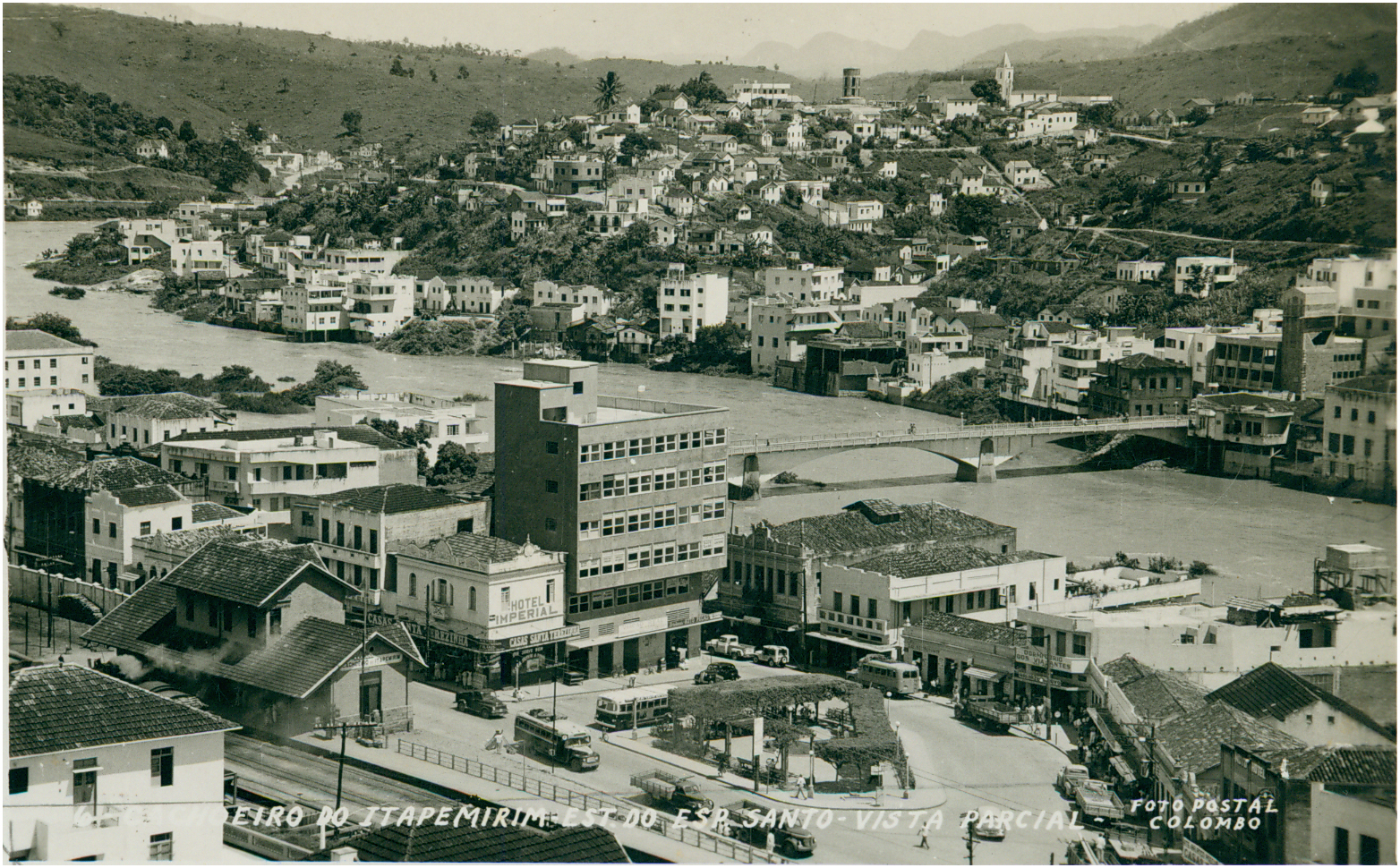 Título: Vista panorâmica da cidade : Estação Ferroviária : [Praça Doutor Luiz Tinoco] : Rio Itapemirim : Ponte Governador João Purano Bley Cachoeiro de Itapemirim, ES