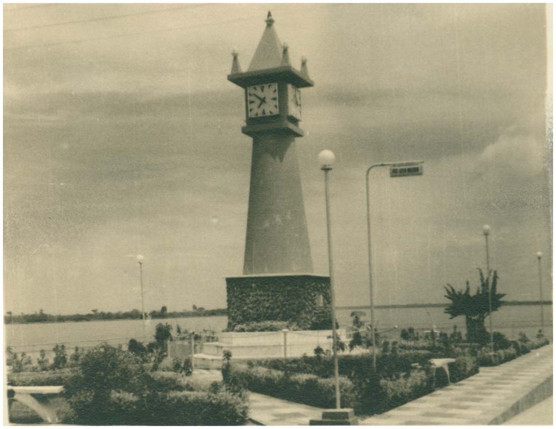Notas: Também conhecida como Pracinha do Relógio. Construída em 1968 pelo prefeito Aurélio Vieira dos Santos. Patrimônio histórico da cidade e Cartão Postal. Na década de 80 o relógio foi removido para conserto e se perdeu. Serviu de farol para os navegantes e orientava-os através do alarme que soava a cada hora exata marcada ao passarem na frente da cidade. Nota-se a esquerda trecho do Rio Amazonas.