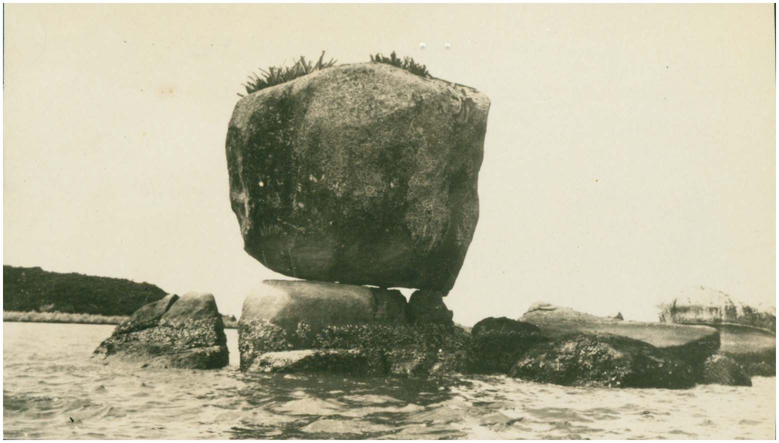 Inscrição na foto: Lendária Pedra dos Ovos, localizada na entrada da Baía de Vitória.