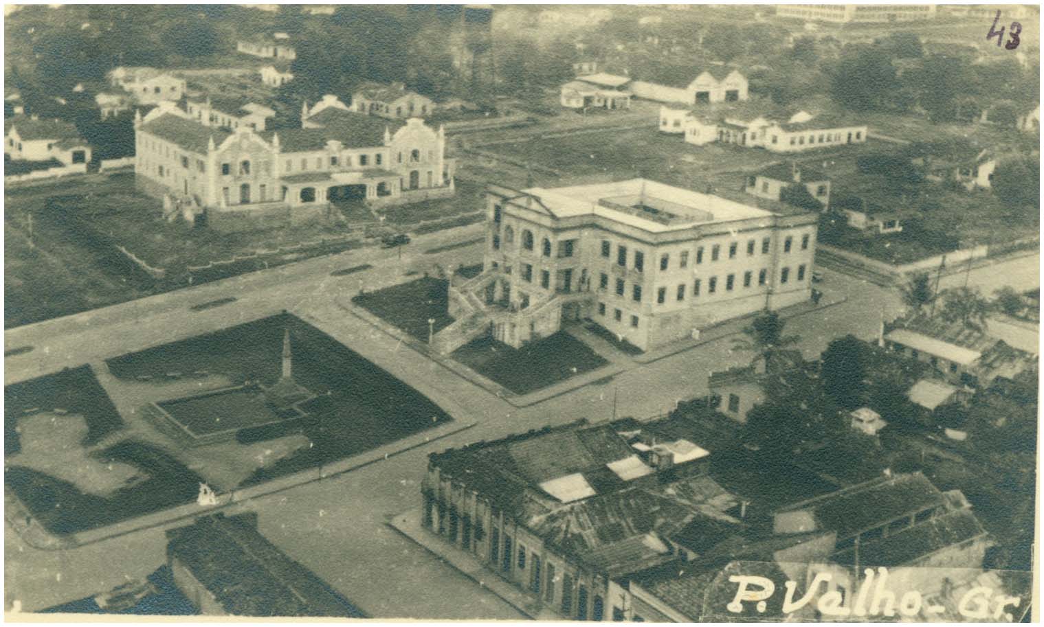 Título: Vista aérea [da cidade : Praça Getúlio Vargas : Palácio do Governo] : Porto Velho Hotel : Porto Velho, RO