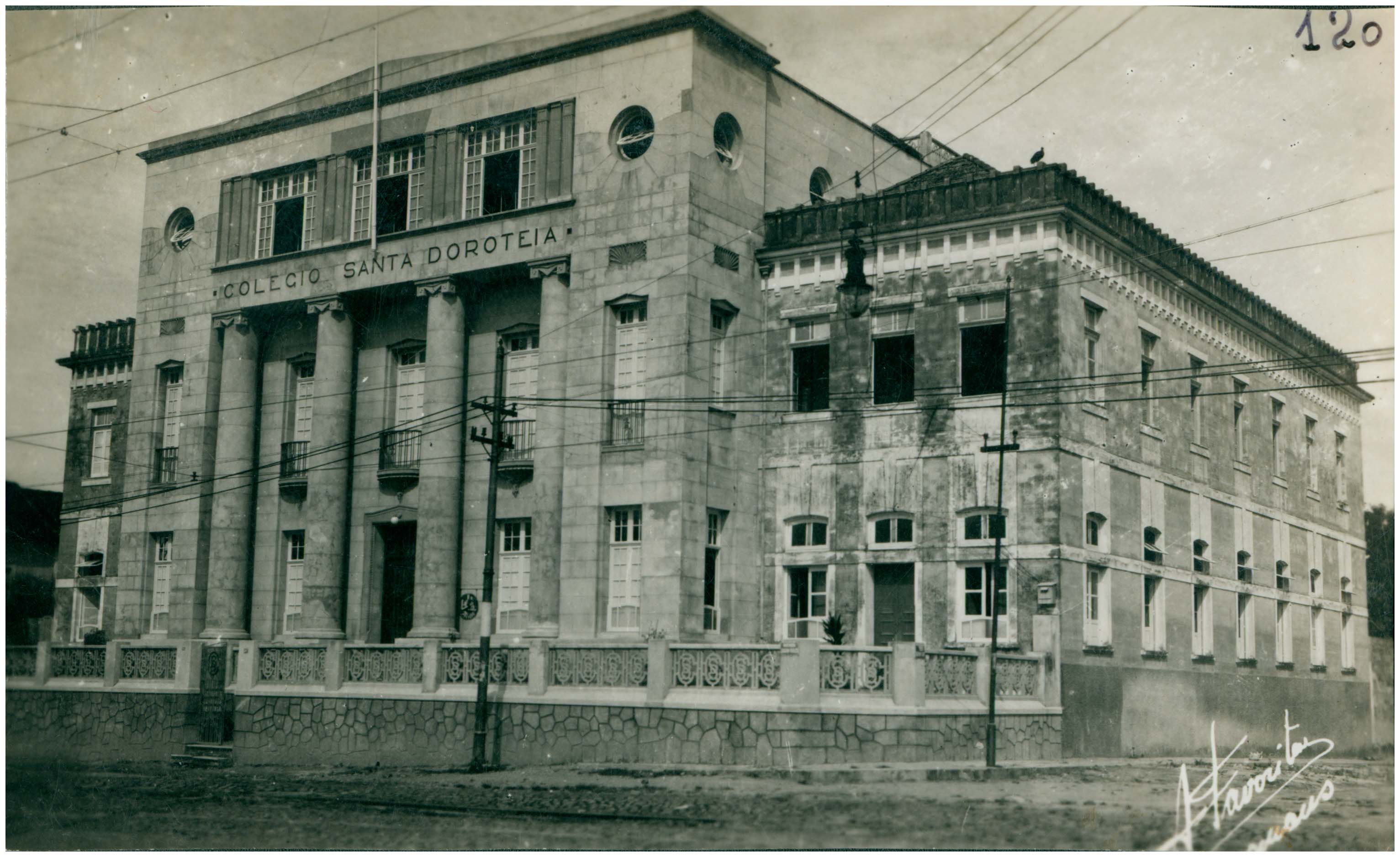 Inscrição na foto: Deve-se ao primeiro Bispo de Manaus, D. José Lorenço de Aguiar, secundado pelas instâncias de seu sucessor D. Frederico Costa, a fundação do Colégio Santa Dorotéia (hoje Instituto Santa Dorotéia), que teve lugar a 7 de outubro de 1910, sob a direção de Madre Antonieta Montoni.