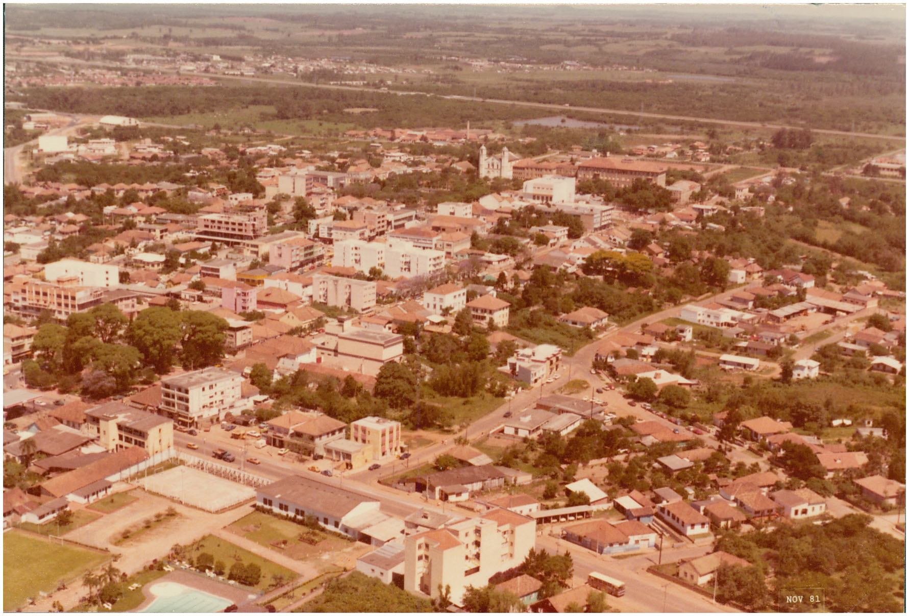 Notas: Inscrição na foto: Nota-se o centro de Gravataí e ao fundo a Paróquia Nossa Senhora dos Anjos.