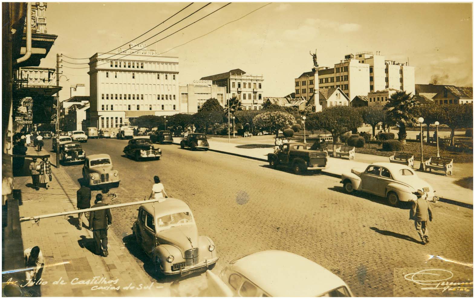 Título: Avenida Júlio Castilhos : Praça Rui Barbosa : Banco do Rio Grande do Sul S. A. : Cine Guarany : Caxias do Sul, RS