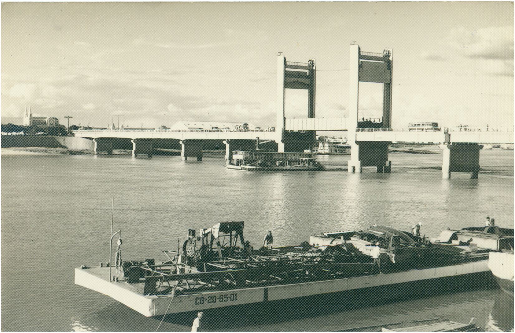Inscrição na foto: Nota-se à esquerda a Catedral de Petrolina e a parte móvel da Ponte, por onde passam as embarcações de grande porte.