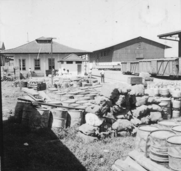 Título: Aspecto do interior do pátio da Estrada de Ferro, vendo-se os trens (RO)