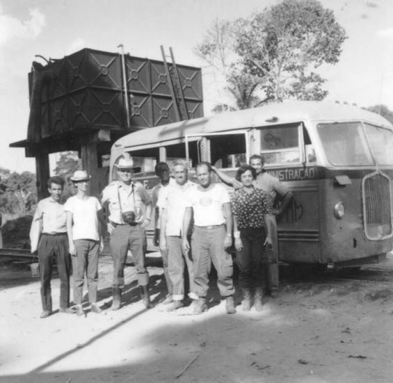 Título: Comitiva do Instituto Brasileiro de Geografia (IBG) junto a automotriz da Estrada de Ferro Madeira-Mamoré na estação de Jirau em Porto Velho (RO)
