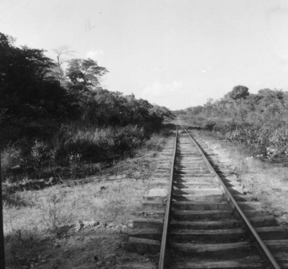 Título: Leito da Estrada de Ferro Madeira-Mamoré no meio do cerradão no km 142 (9 km a sudoeste de Jirau) em Porto Velho (RO)