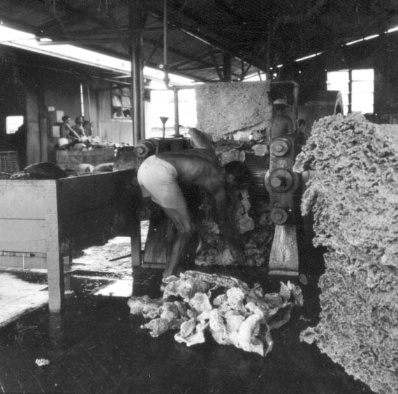 Título: Interior da Companhia Nacional de Borracha vendo-se a borracha em crepe em Manaus (AM)