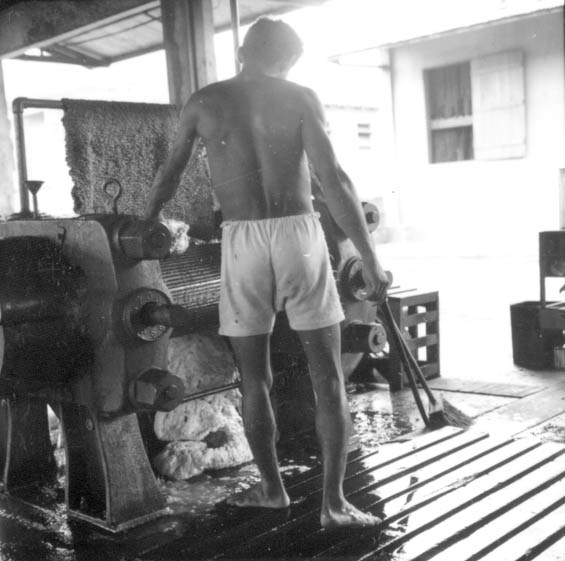Título: Operário na máquina da Companhia Nacional de Borracha S/A em Manaus (AM)