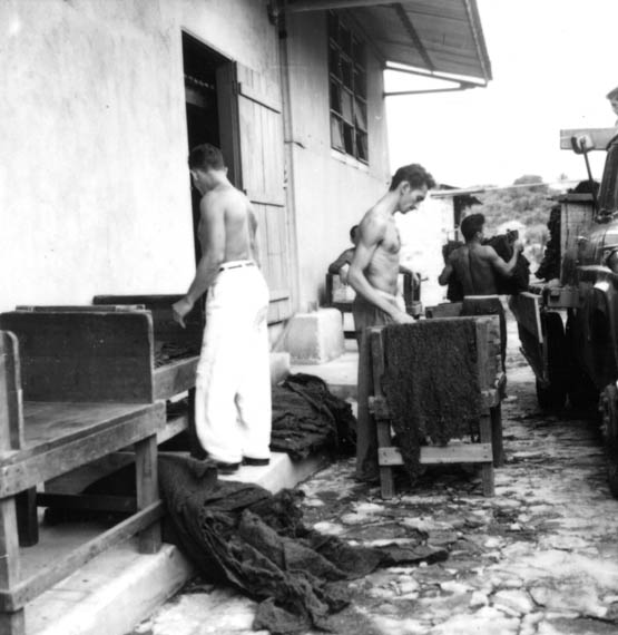Título: Interior da fábrica, operários trabalhando na Companhia Nacional de Borracha S/A em Manaus (AM)