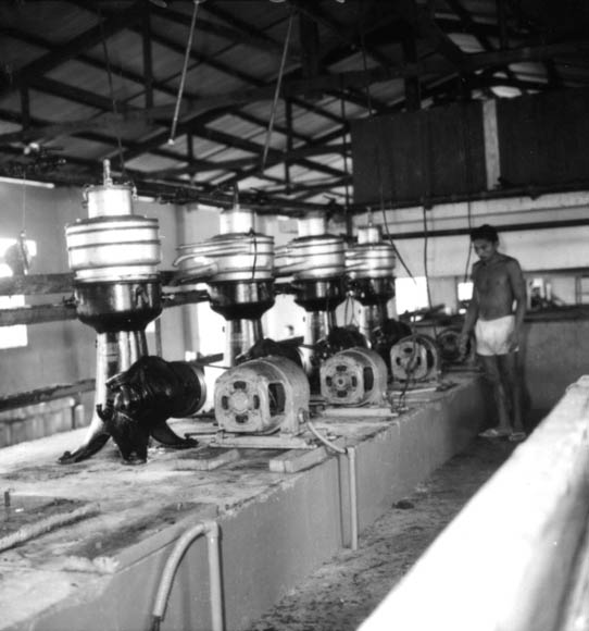 Título: Interior da fábrica vendo-se batedeiras com bombas em Manaus (AM)