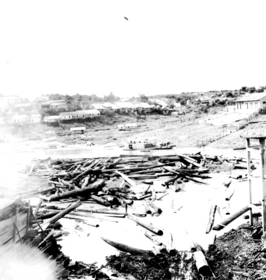 Título: Rio cheio de toros de madeira em Manaus (AM)