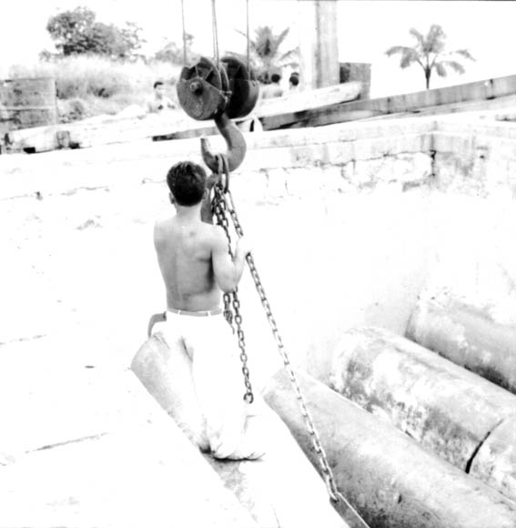 Título: Trabalhador descendo no guindaste em Manaus (AM)